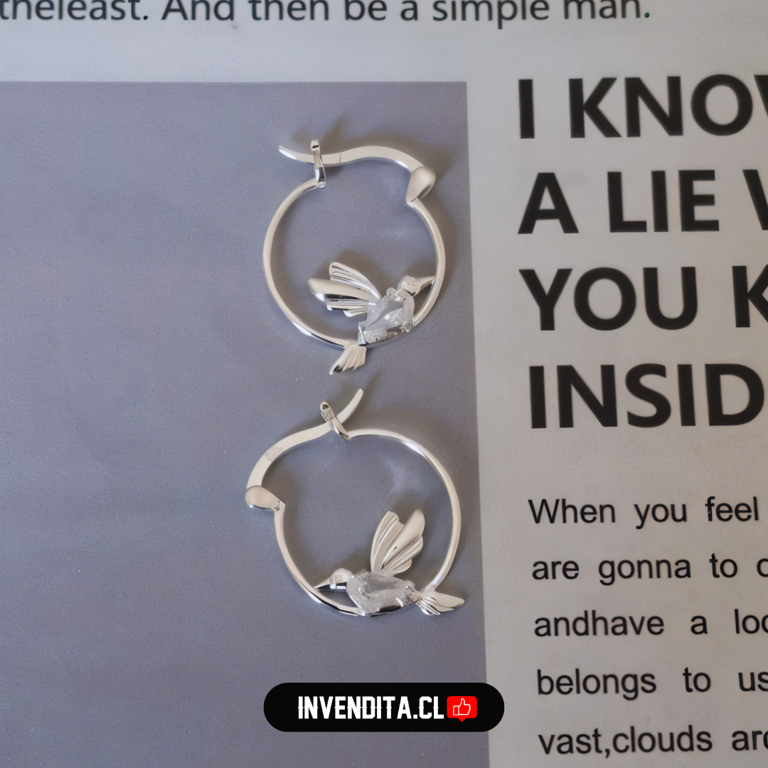 Aros de plata 925 diseño colibrí con circón y broche criollo