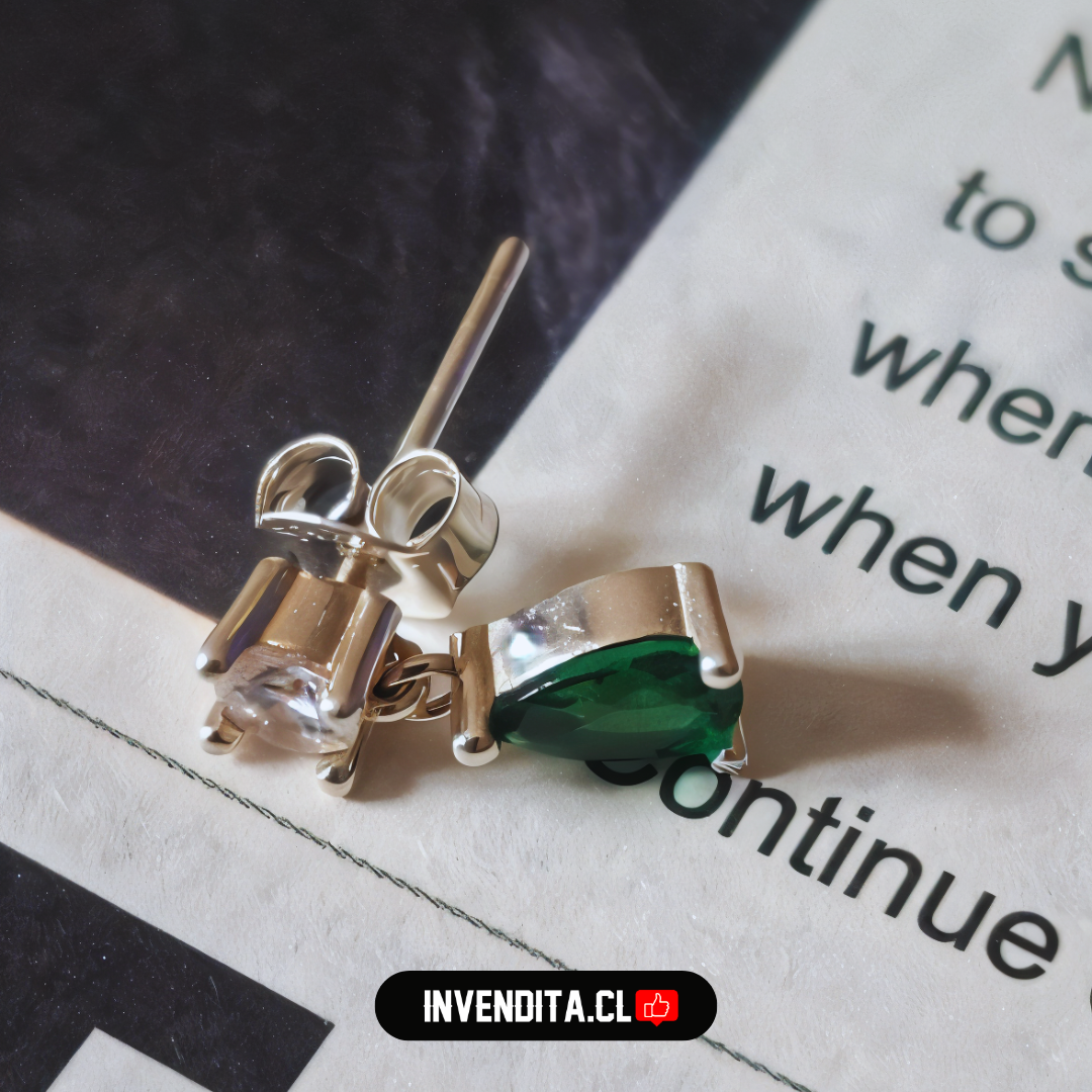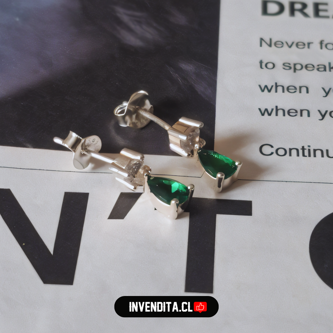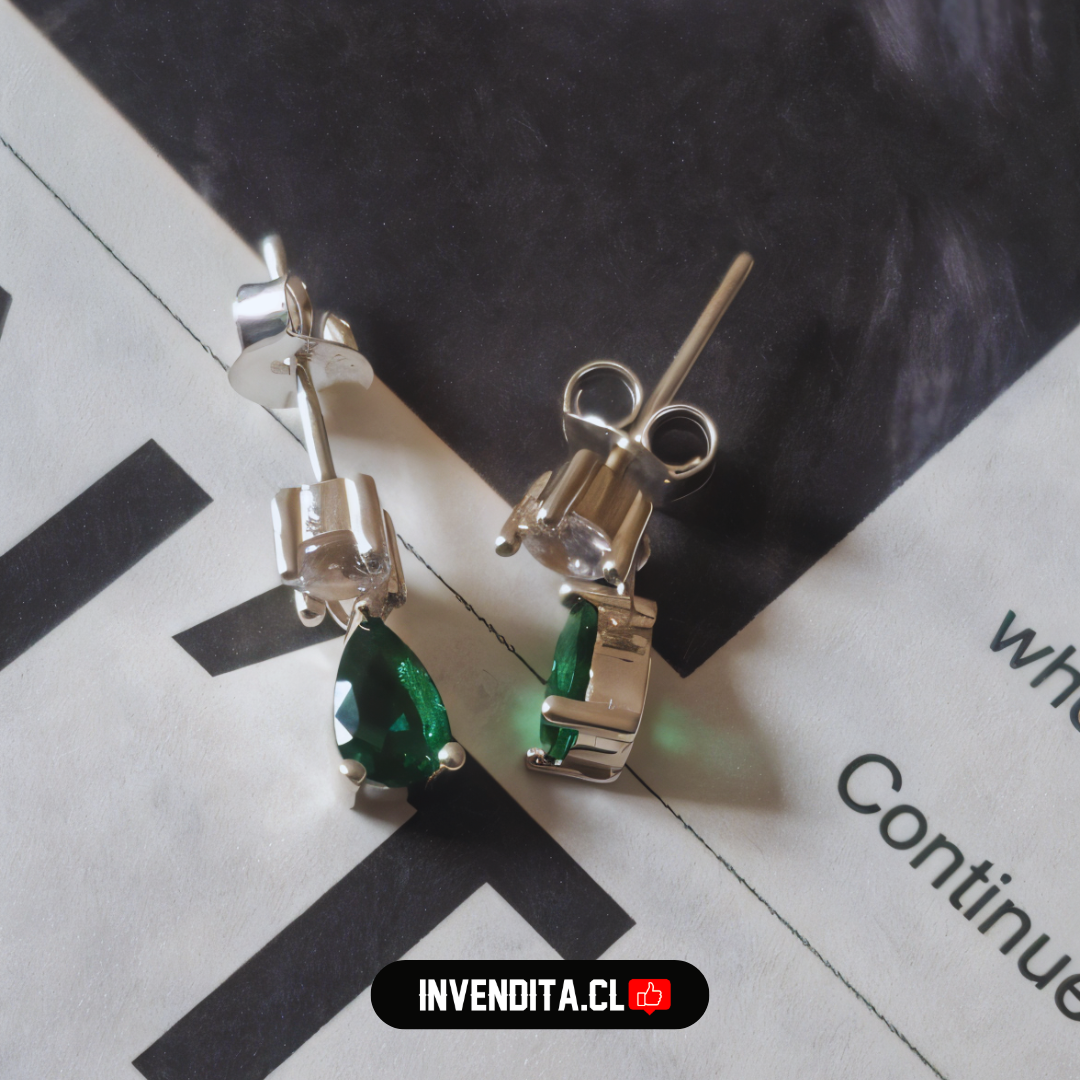 Aros de plata 925 gota con circón color esmeralda