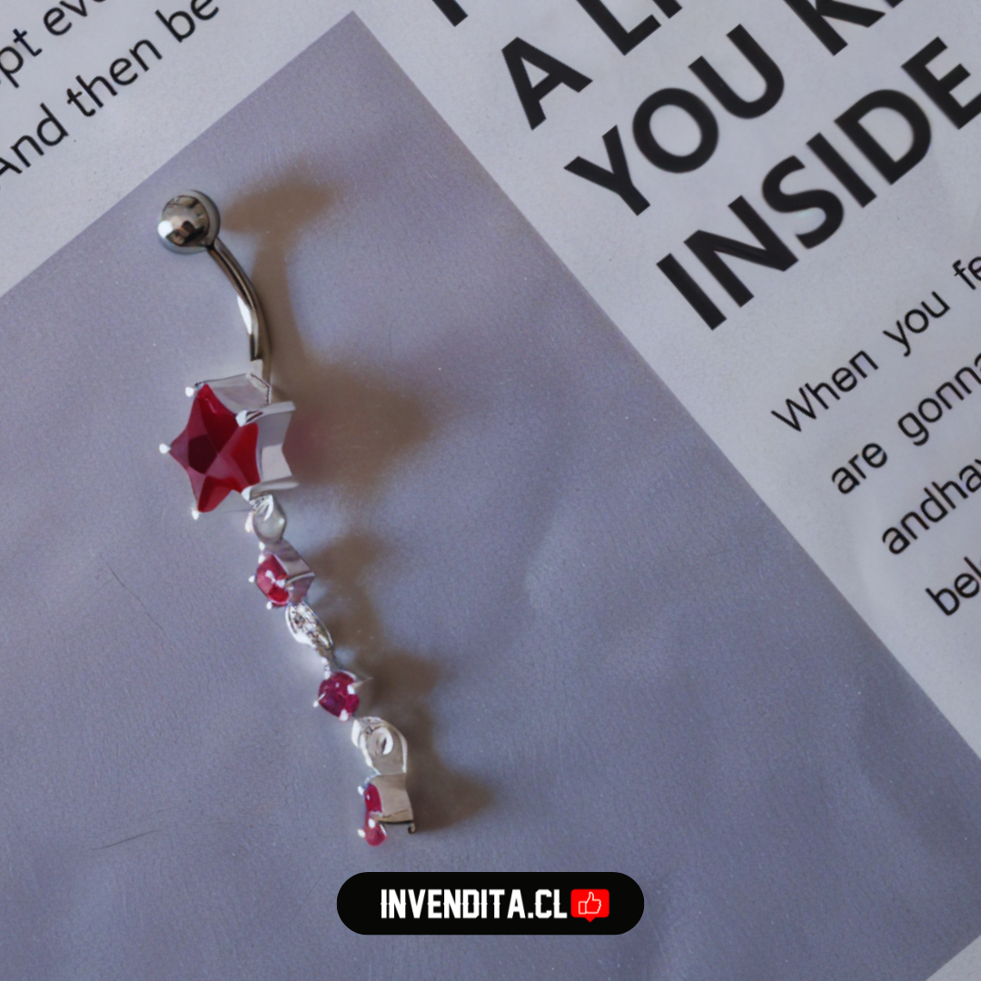 Aro de plata 925 Piercing ombligo estrella con circones de rubí