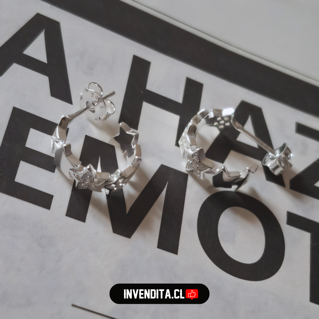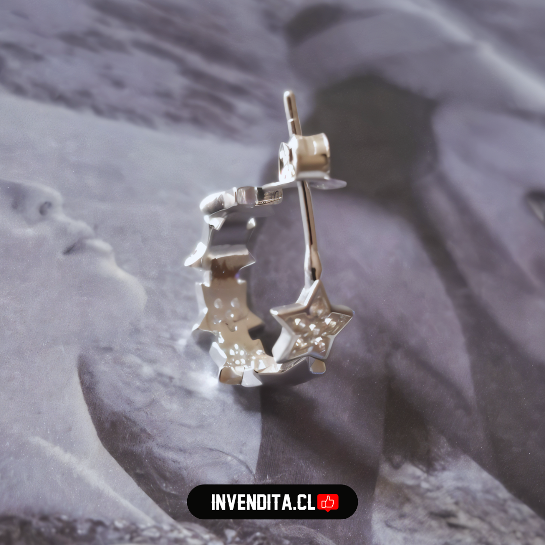 Aros de plata 925 semi argollas de estrellas
