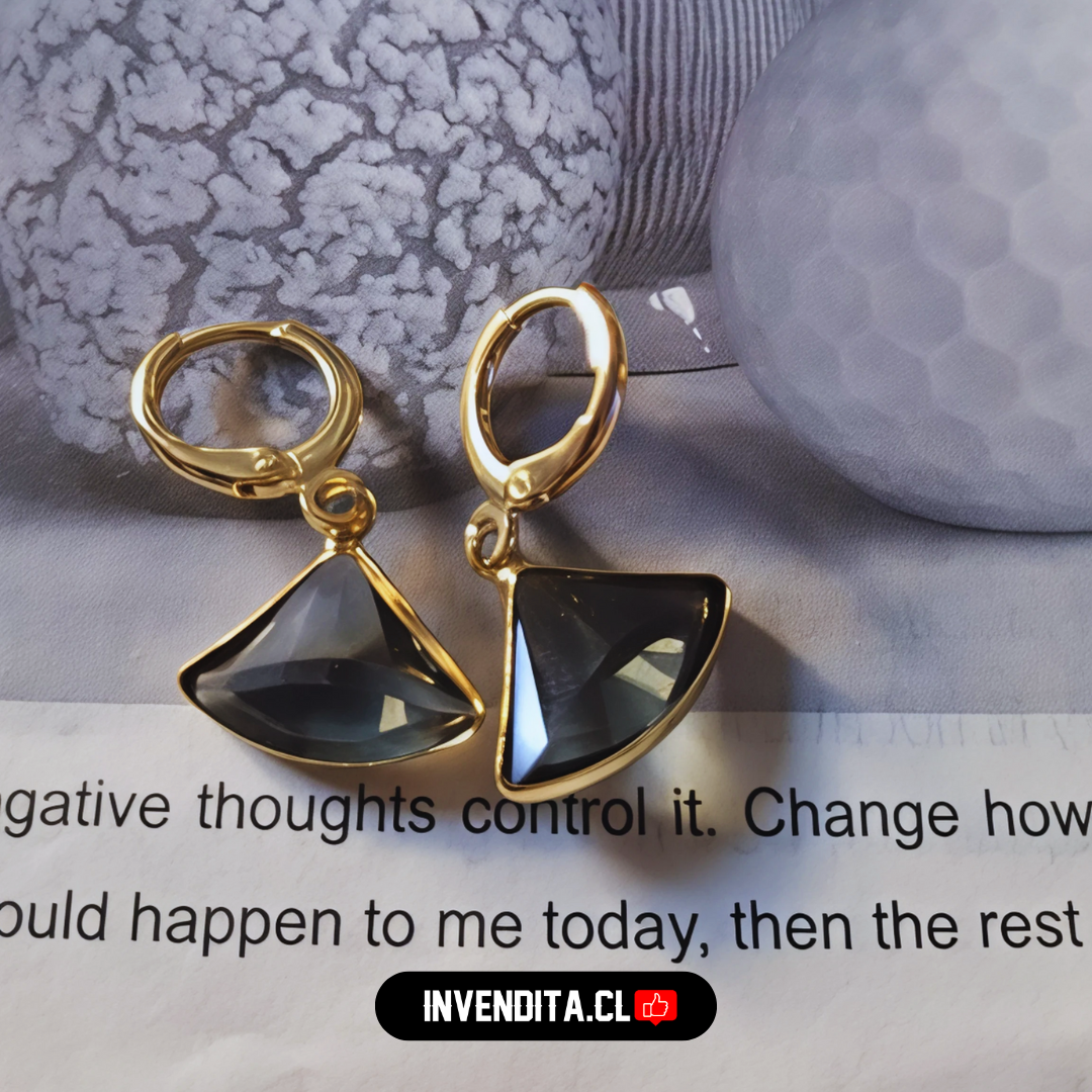 Aros enchapados en oro argolla con figura triangular de onix