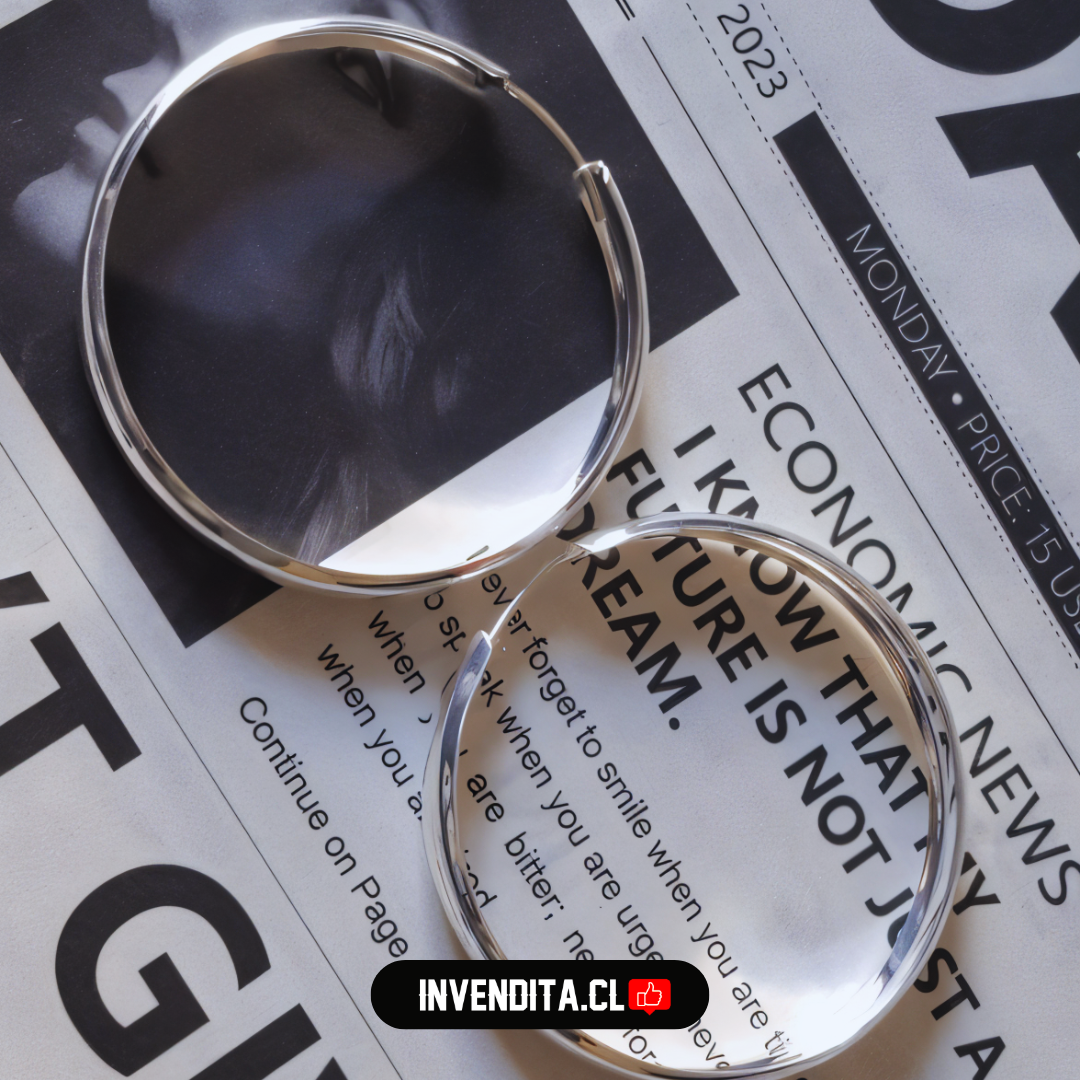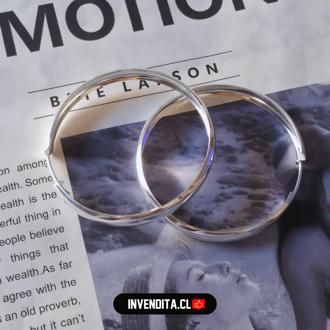 Aros enchapados en plata diseño argollas lisa bordes redondeados
